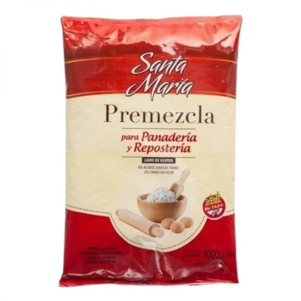 Premezcla Santa Maria, ideal para panadería y repostería libre de gluten, apta para consumidores celíacos. Fácil de usar y con resultados consistentes.