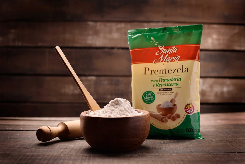 Premezcla Santa Maria, ideal para panadería y repostería libre de gluten, apta para consumidores celíacos. Fácil de usar y con resultados consistentes.